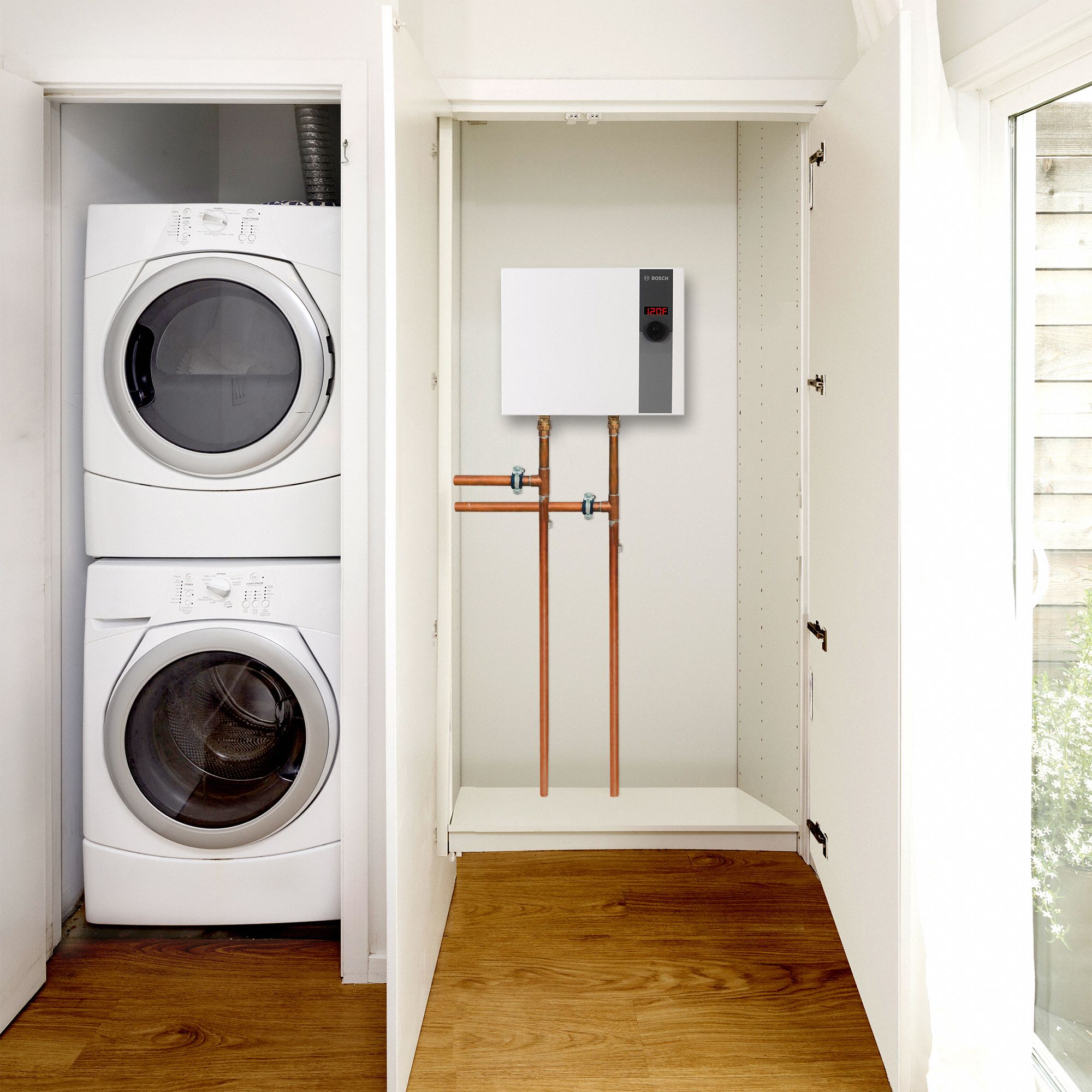 A better solution is to install a point-of-use Bosch electronic Tankless water heater Bosch offers gas tankless, electric tankless, and electric storage water heaters so you can select the best option and capacity for your home or commercial building. This process ensures an immediate flow of hot water while also avoiding standby heat losses.